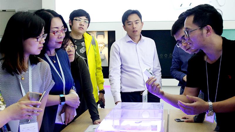商遇智慧樣闆房參觀,研討(tǎo)團一行(xíng)對控客軟件(jiàn)交互興趣濃厚本次研討(tǎo)會(huì)爲期一天,研討(tǎo)團一行(xíng)在杭州未來科技城與錢江新城先後探訪控客智慧家庭、智慧公寓、智慧辦公落地(dì)案例,并展開(kāi)智慧化應用(yòng)沙龍探討(tǎo)物(wù)聯新技術(shù)在地(dì)産領域的(de)應用(yòng)與發展。