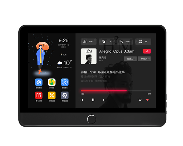 一台裝在牆上(shàng)集控制(zhì)、查詢、音(yīn)樂(yuè)播放(fàng)于一身的(de)“pad”