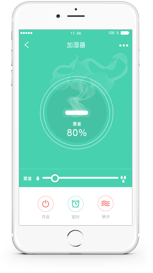 無論躺著(zhe)、坐著(zhe)還是癱著(zhe),通過手機就能(néng)調節加濕器(qì)的(de)噴霧量大(dà)小(xiǎo),在APP界面滑動手指即可(kě),既簡單又(yòu)方便。